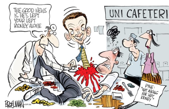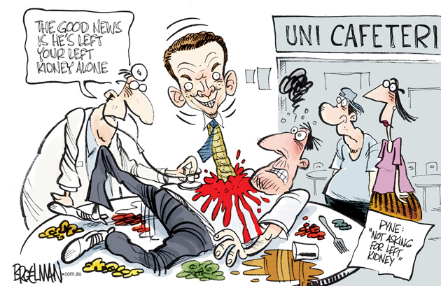 Education Minister Pyne doesn’t want your left kidney after all…